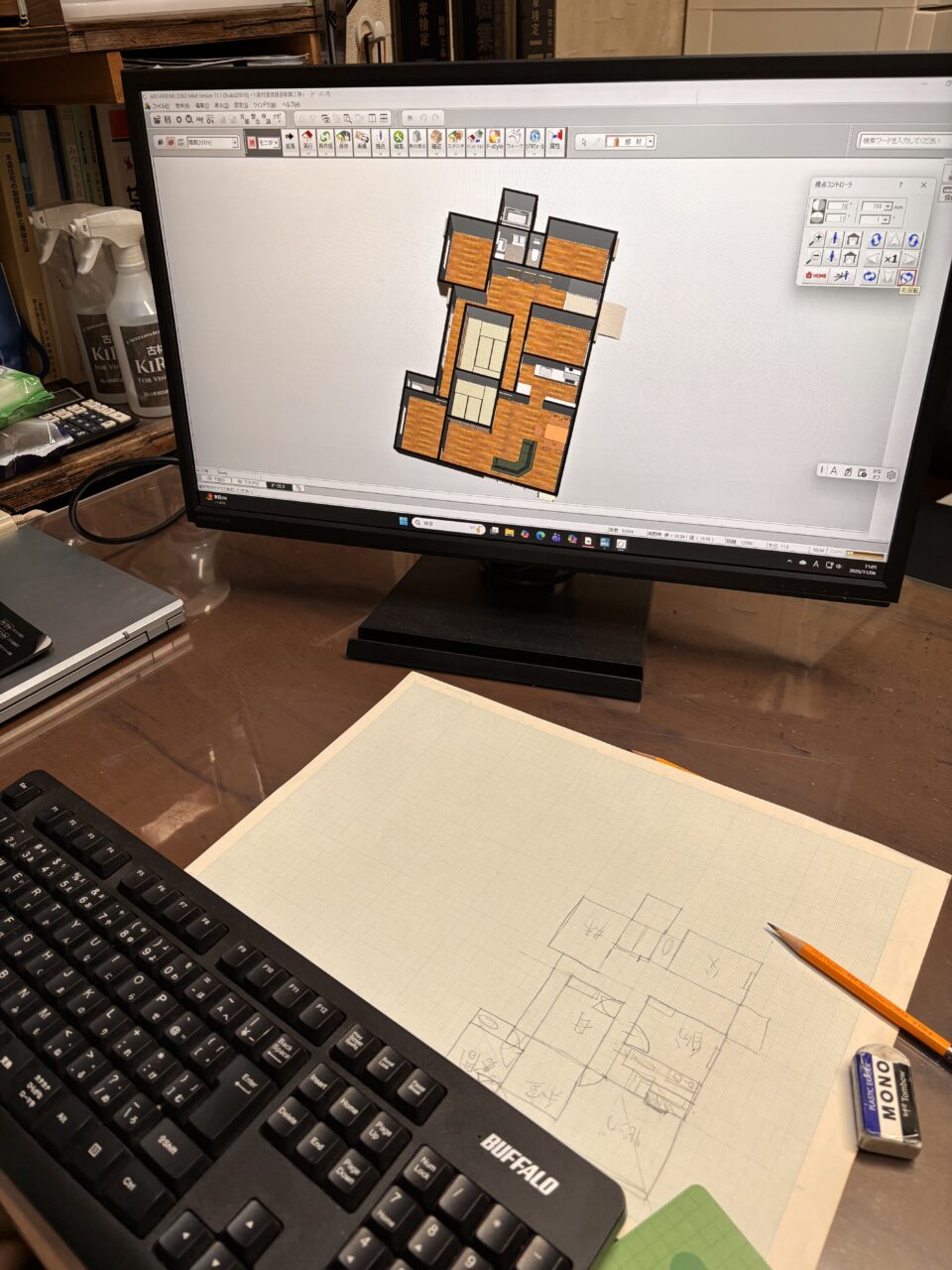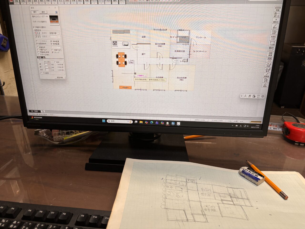 1日目は「自分の理想の家づくり」をテーマに、CADを使って図面を描くところからスタート。