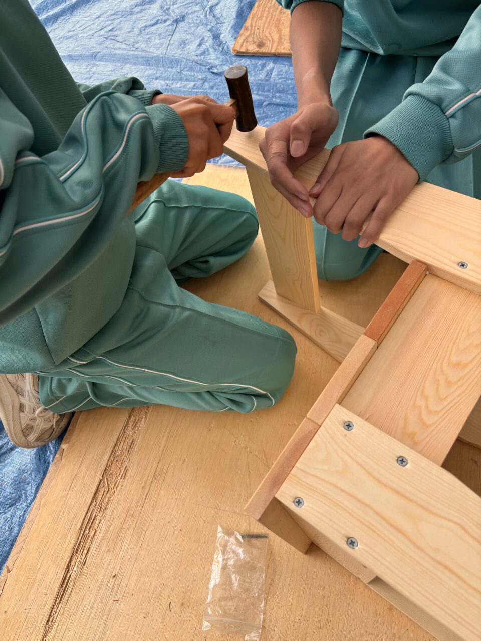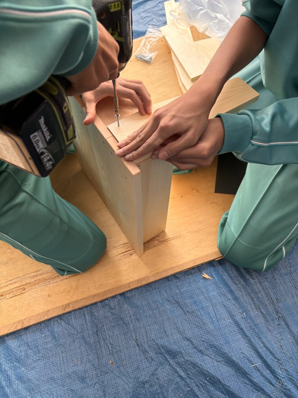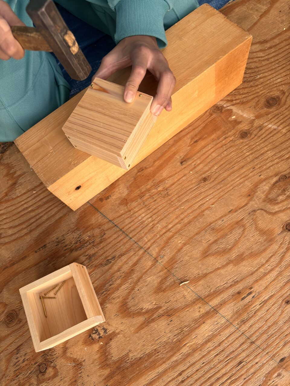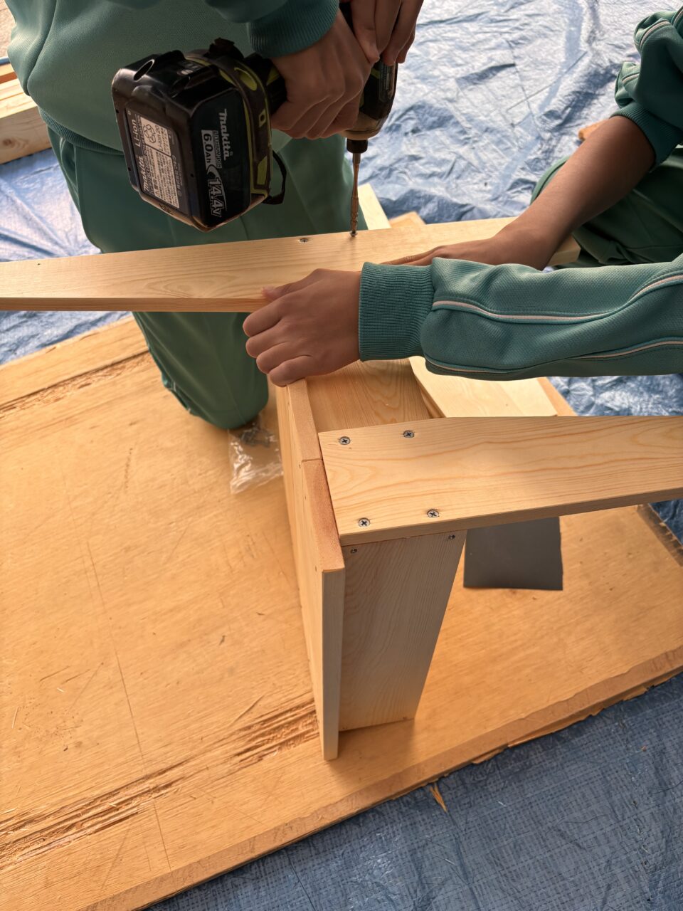 その後はインパクトドライバーを使って椅子づくり、最後には一合枡の製作にも挑戦!
