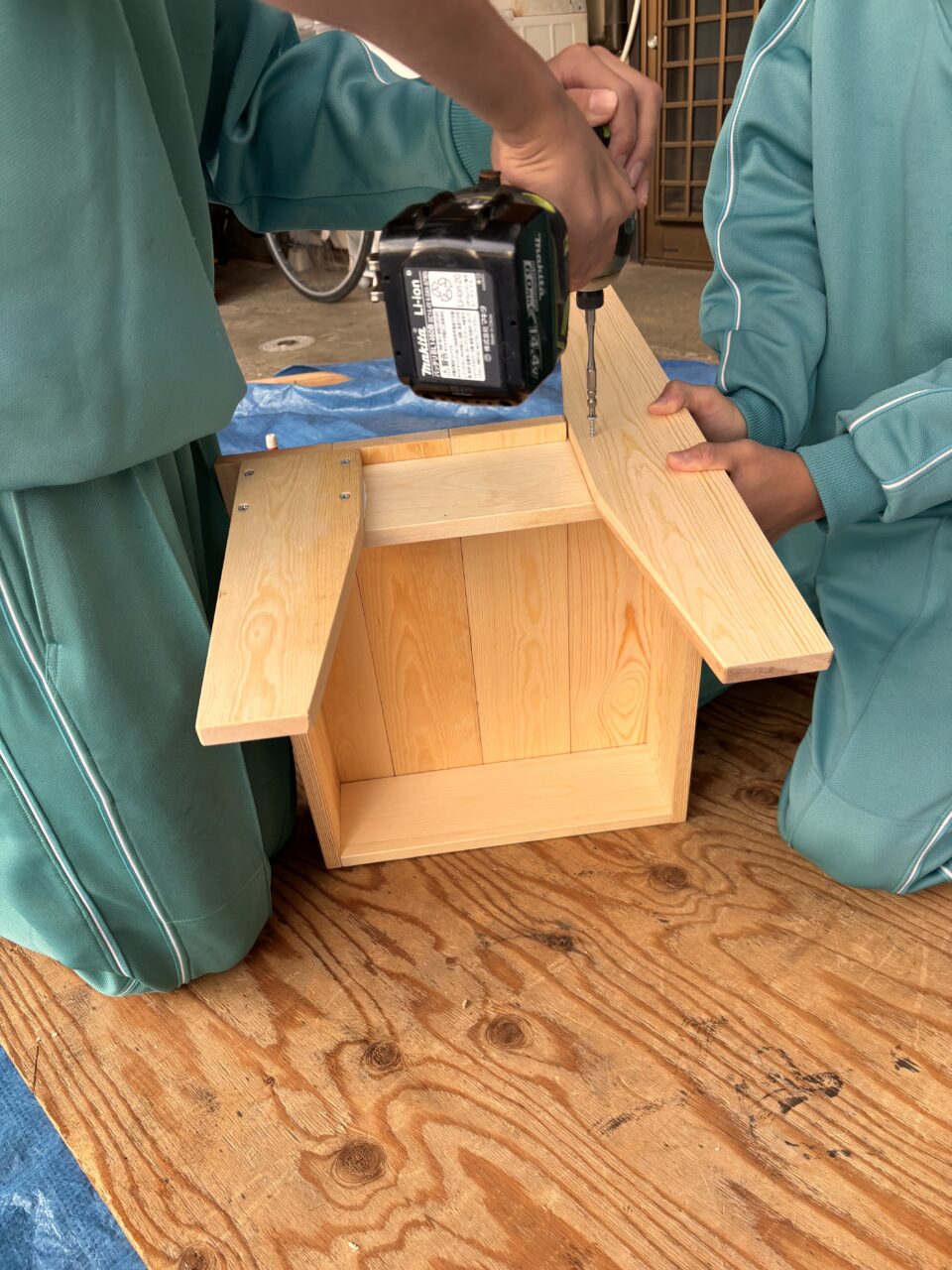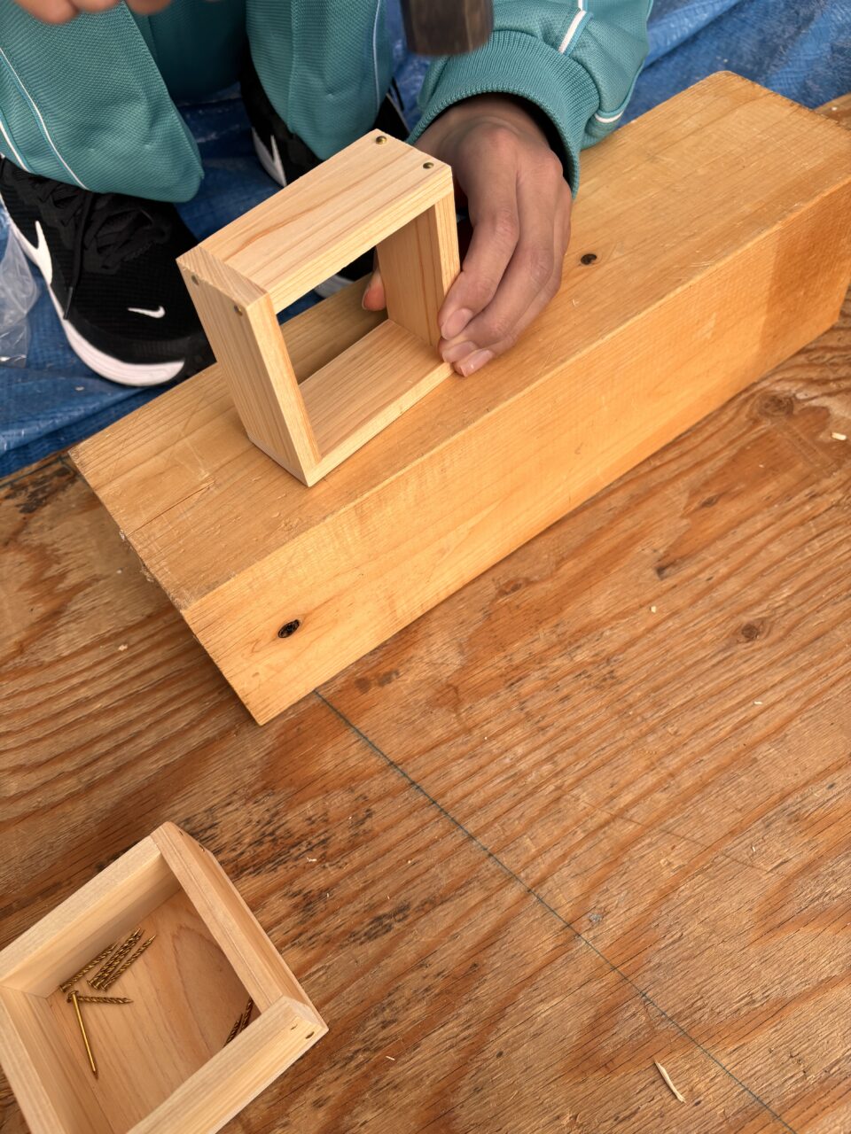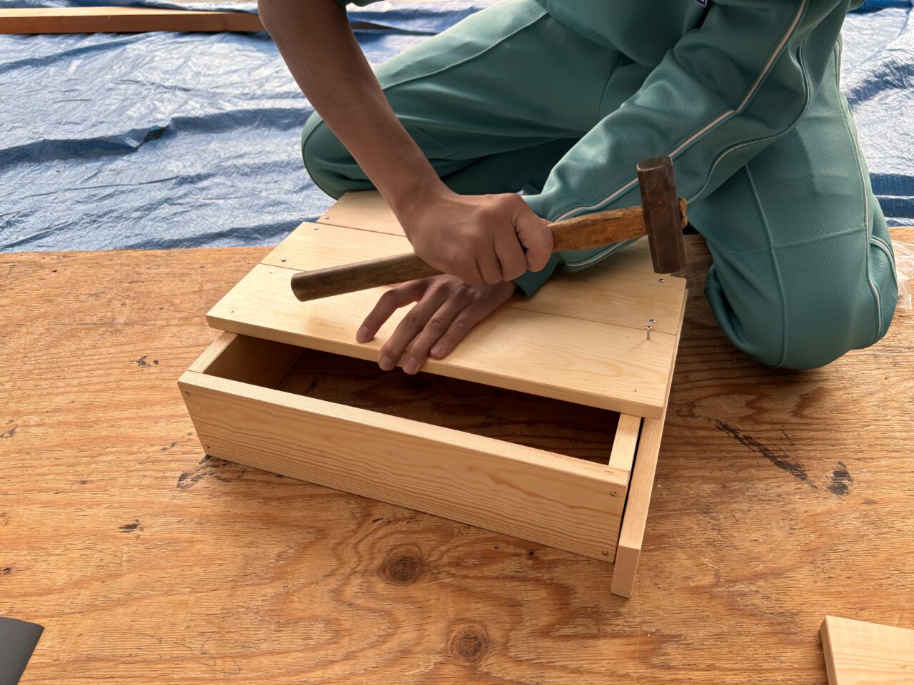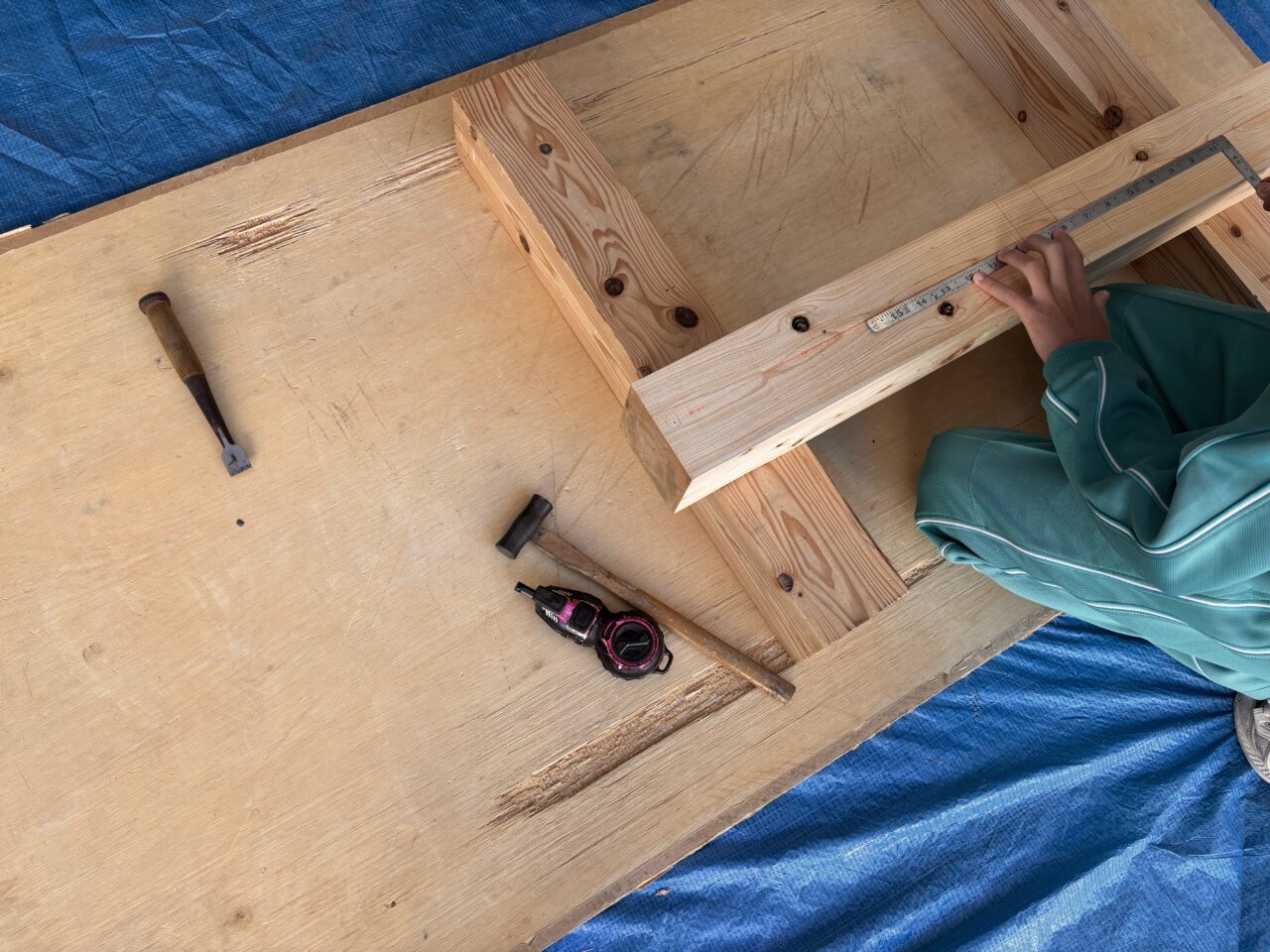 その後はインパクトドライバーを使って椅子づくり、最後には一合枡の製作にも挑戦!