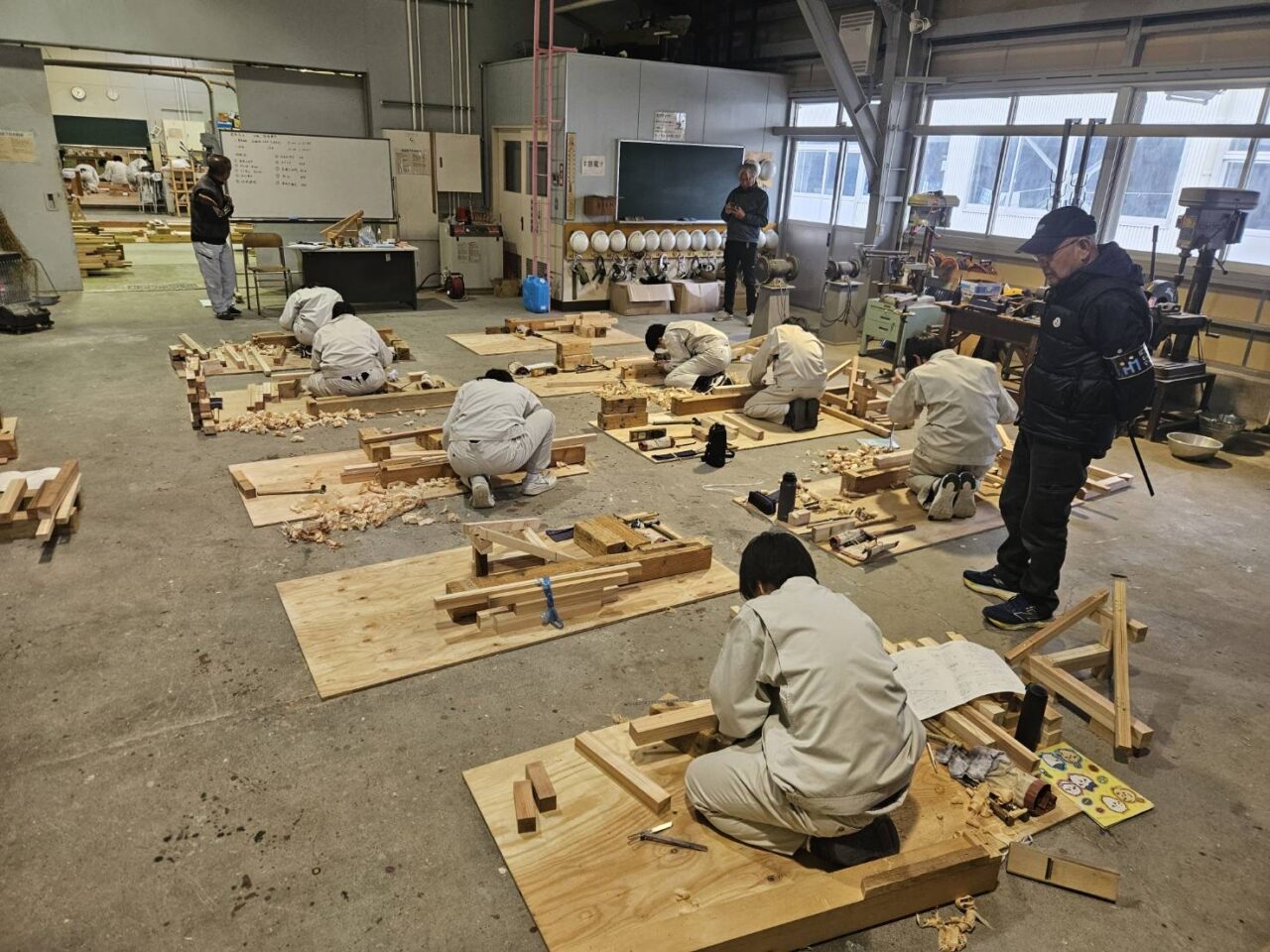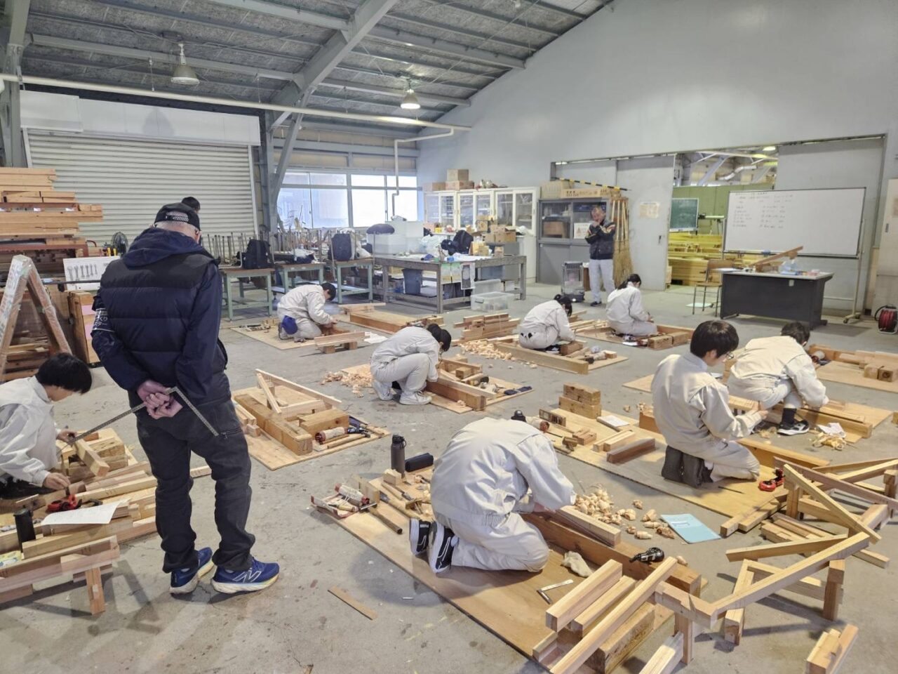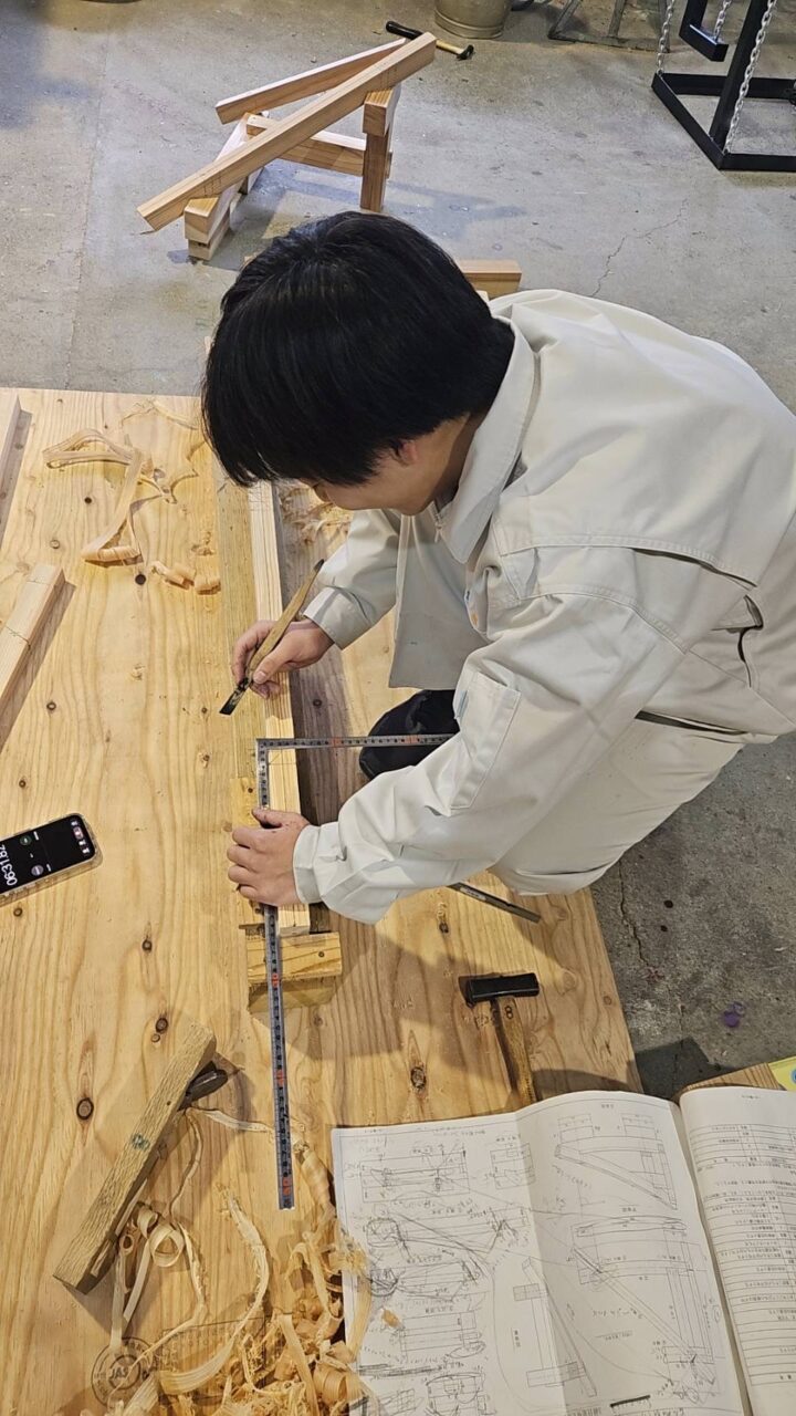 社長は講師として、生徒の皆さんへ実践的な技術や現場での経験を伝え、未来の大工職人を育てるサポートを行っています。真剣なまなざしで取り組む生徒たちの姿に、こちらも身が引き締まる思いです。