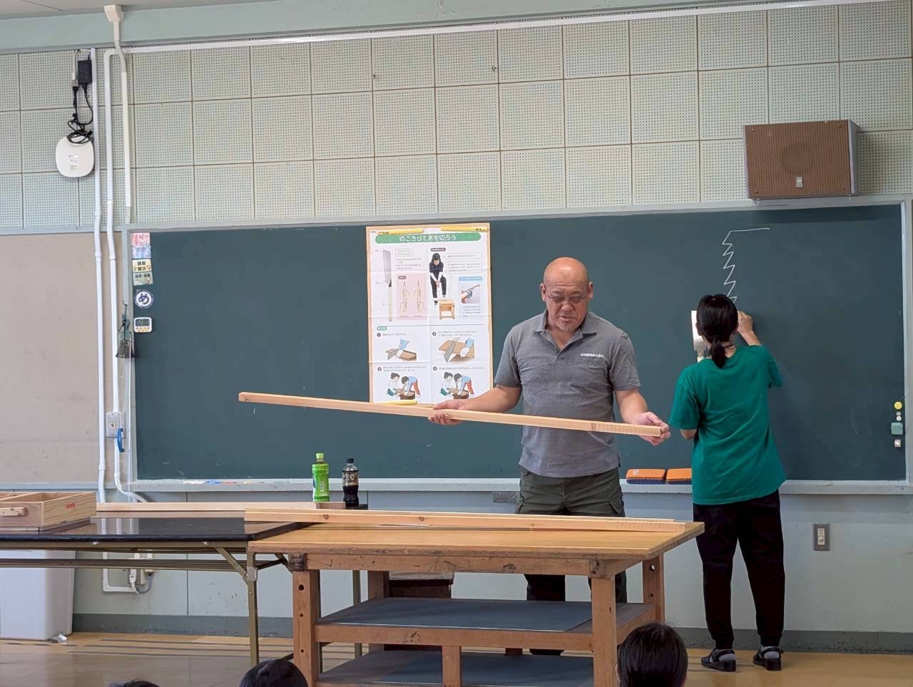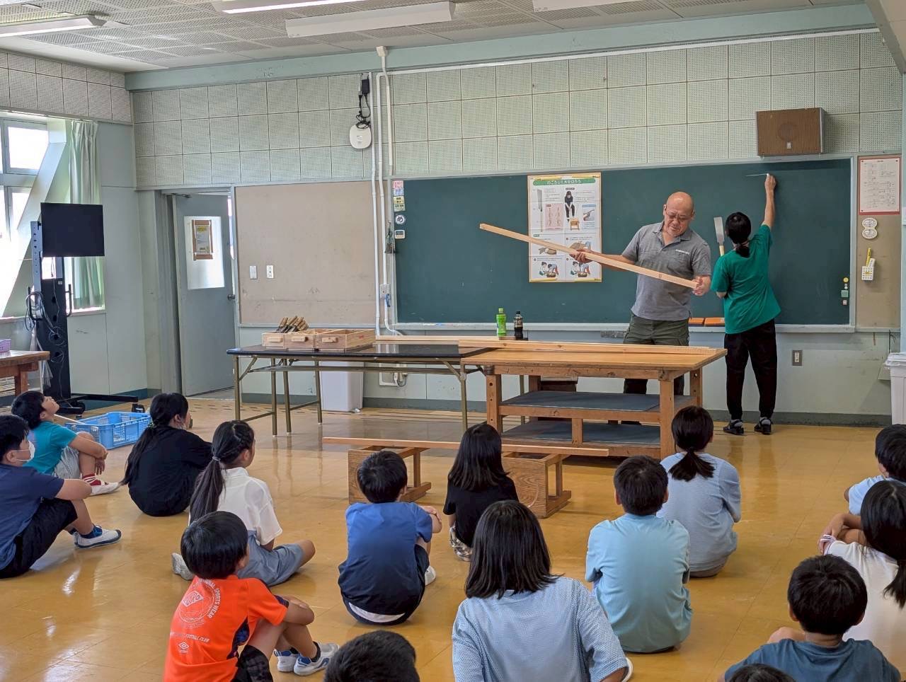 母校でもある 泉小学校 にて、四年生を対象にした図工の授業「のこぎりギコギコ」の特別講師を務めました。