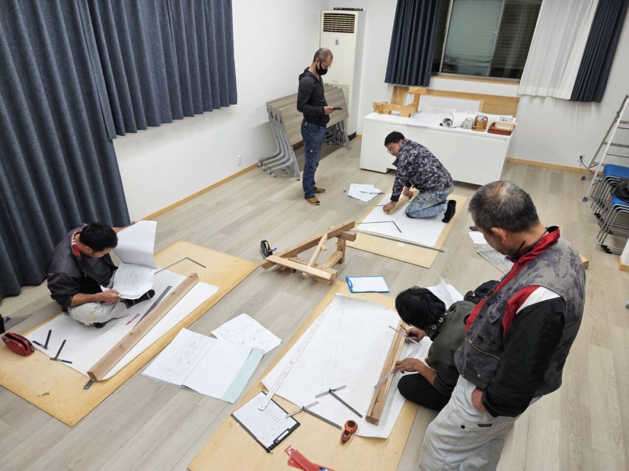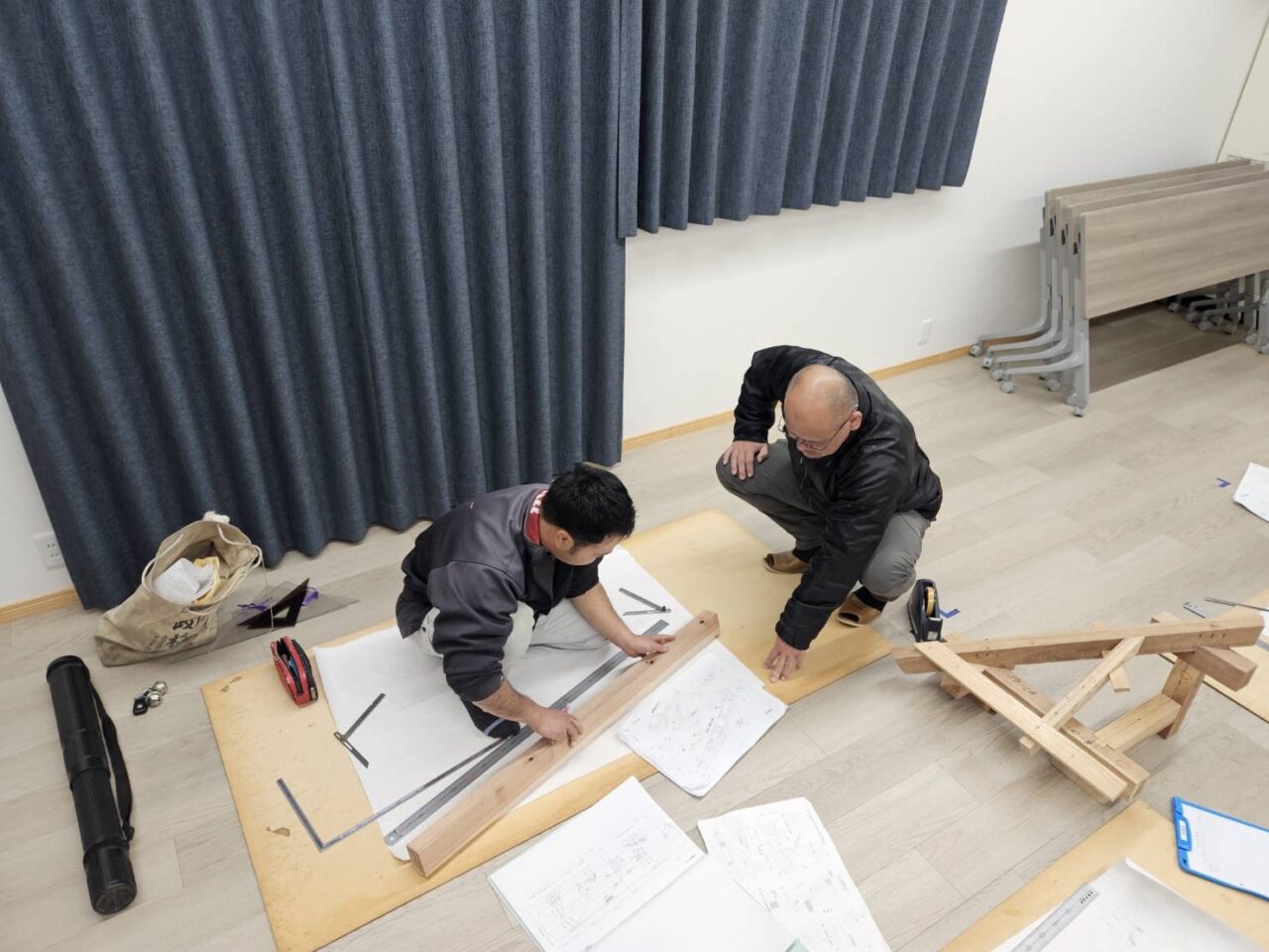 建築大工を志す生徒さんたちは、日中の仕事を終えたあと、夜の時間を使って一生懸命勉強に励んでいます。